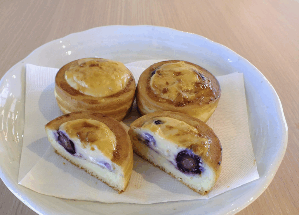 口に入れた瞬間のおいしさが圧倒的でした。ブルーベリーの酸味と今川焼きの甘みがマッチしていて、全体のバランスが取れた一品でした。