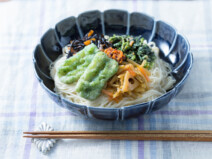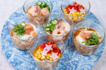 色とりどりの具材とそうめんを盛り付けた、涼やかなメニューです。