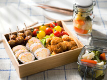 カラフルな飾り巻き寿司と作り置きおかずで、華やかなお花見弁当が完成します。