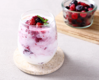冷凍ミックスベリーを耐熱性のポリ袋に入れ600Wの電子レンジで約30秒温め、手で揉みつぶし、ピューレ状にする。<A>をよく混ぜ合わせ、グラスに注ぐ。1のポリ袋の端をハサミで切り、2に注ぎ入れ、軽く混ぜる。お好みで冷凍ミックスベ […]