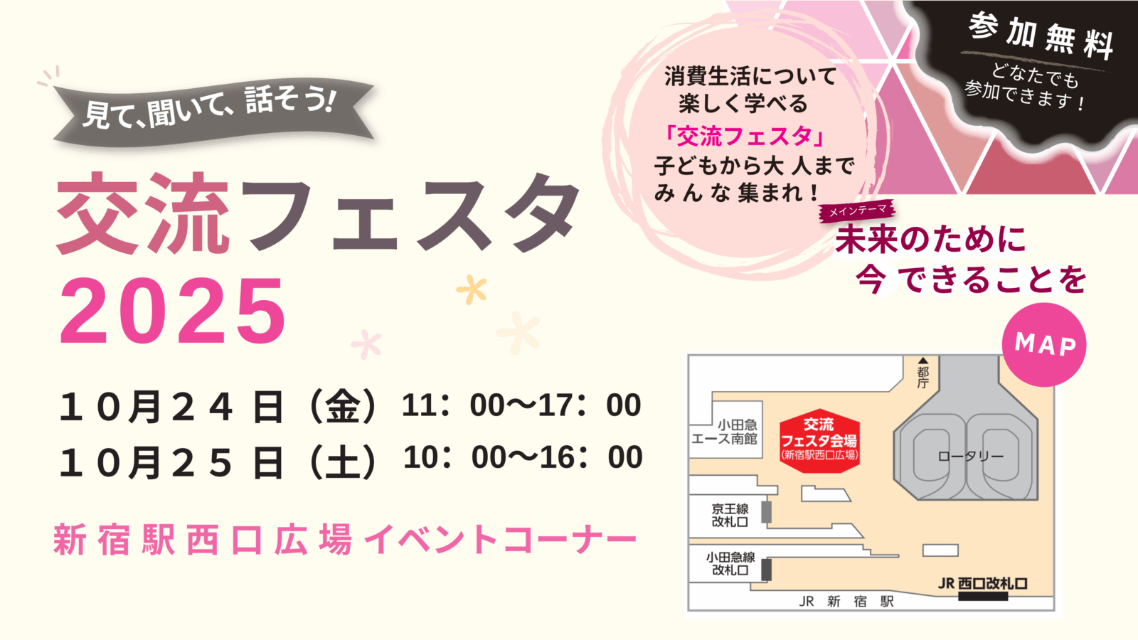 東京都消費者月間実行委員会が主催する「交流フェスタ2025」にブース出展します。10月25日のミニセミナーにも登壇いたしますので、ぜひお越しください!