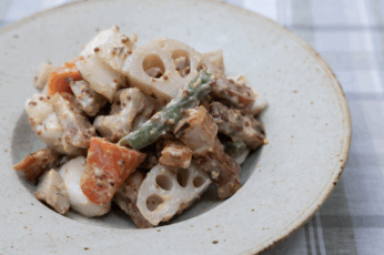 水菜ときんぴらのシャキシャキ感が美味しさの決め手!