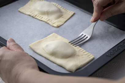パイシートののり付けや、焼くときにぬる卵は、パイシートの切り口に付かないようにしましょう。