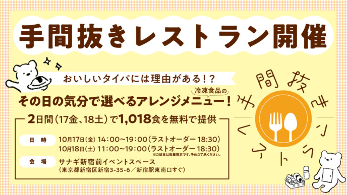 10月18日は冷凍食品の日!おいしいタイパには理由がある!?その日の気分でメニューが選べる【手間抜きレストラン】開催