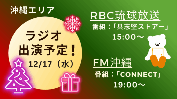 沖縄エリアでラジオ出演予定!