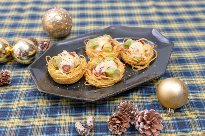 ハンバーグとアボカドのパスタネスト
