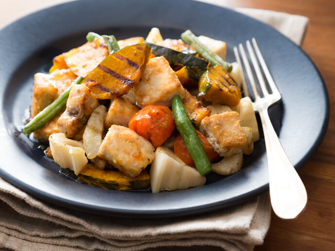色とりどりの野菜に焼き目をつけてごちそう感UP!カジキのグリルサラダ