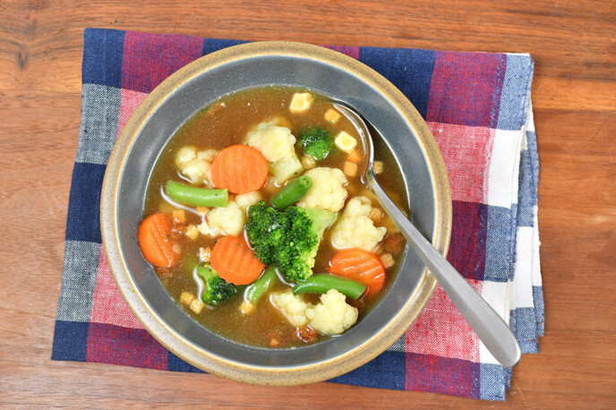 冷凍野菜とインスタントスープを使って3分で完成!冬にうれしいホットサラダ