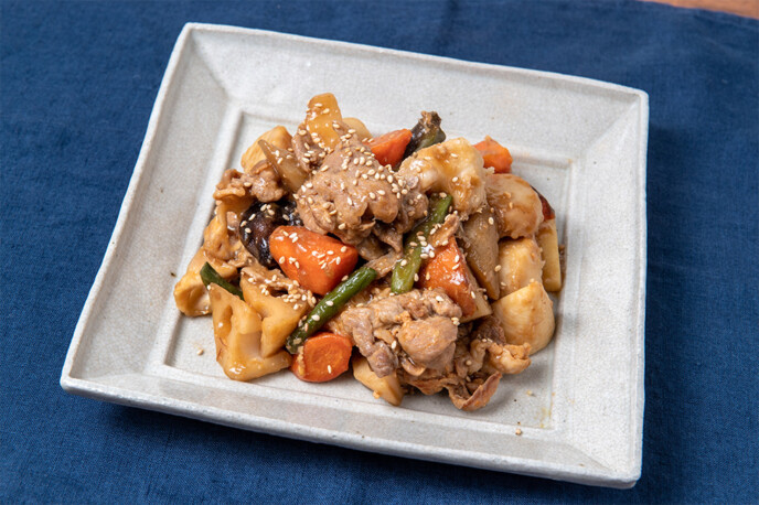 【漬け込み肉と冷凍野菜でボリュームおかず2】豚肉×和野菜の韓国風ピリ辛煮