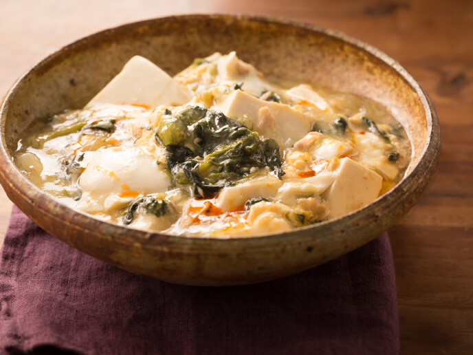 ほうれん草のごま和えを活用した中華あん豆腐・冷凍和惣菜があれば!2
