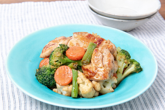 【漬け込み肉と冷凍野菜でボリュームおかず1】鶏肉×洋野菜の味噌カレーマヨ炒め